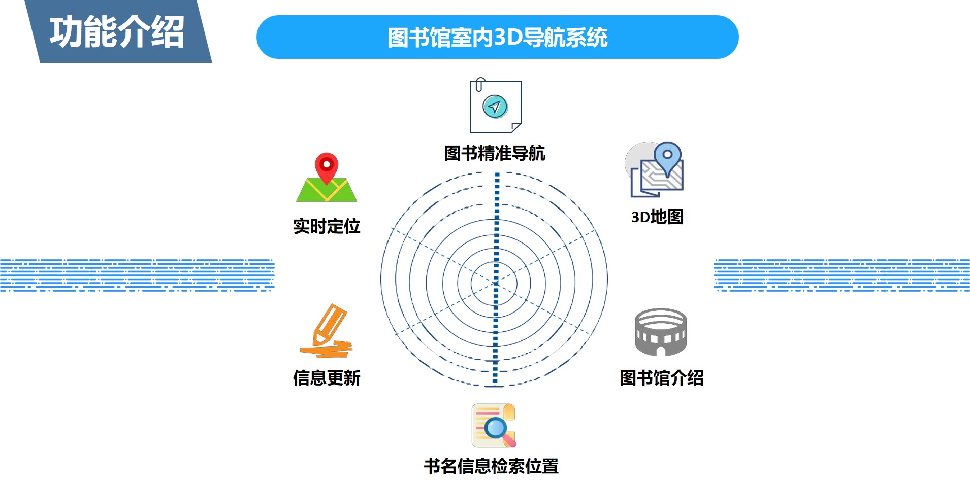智慧图书馆 图书检索实时导航 为解决找书及找公共设施难问题,我司研发“3D图书馆导航系统”,以微信小程序为载体,全方位展示图书馆室内外3D地图,为读者提供楼层、书架、公共设施设备、出口、房间等目的地的实时导航路线